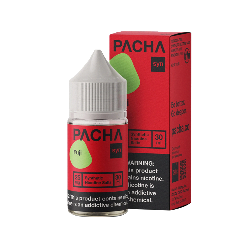 Pacha Syn Nic Salt Vape Juice, produced by Pacha Mama (a brand under Charlie’s Chalk Dust), is a line of nicotine salt e-liquids featuring synthetic nicotine. Pacha Syn Nic Salt offers a wide range of vibrant and well-crafted flavors, including fruit blends and exotic combinations.